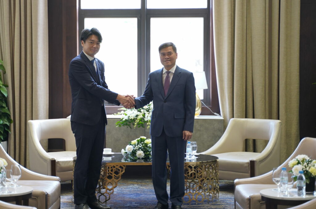 On the morning of November 24, Mr. Omika Takeshi has a courtesy meeting with Chairman of the Quang Ninh Provincial People’s Committee Bui Van Khang. During the meeting, Mr. Takeshi Omika expressed gratitude for the province’s attentive guidance and close attention in recent times, particularly the support and assistance in resolving site clearance difficulties for Amata City Ha Long.