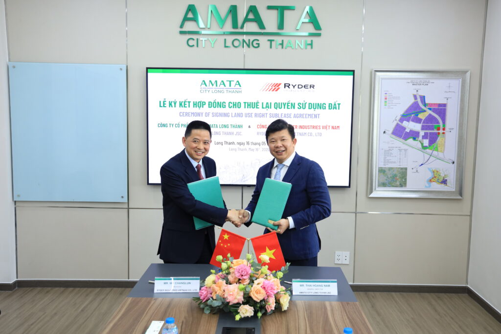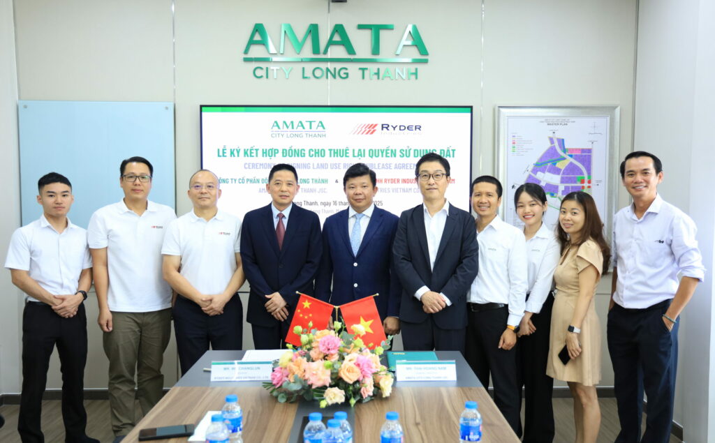 Ngày 16/05/2025, Công ty Cổ phần Đô thị Amata Long Thành đã ký hợp đồng cho thuê lại quyền sử dụng đất cùng 𝐂𝐨̂𝐧𝐠 𝐓𝐲 𝐓𝐍𝐇𝐇 𝐑𝐲𝐝𝐞𝐫 𝐈𝐧𝐝𝐮𝐬𝐭𝐫𝐢𝐞𝐬 𝐕𝐢𝐞̣̂𝐭 𝐍𝐚𝐦 với diện tích 𝟐.𝟐 𝐡𝐚 tại KCN CNC Long Thành. Đây là dự án với tổng vốn đầu tư 𝟐𝟎 𝐭𝐫𝐢𝐞̣̂𝐮 𝐔𝐒𝐃 của Ryder Industries, một tập đoàn công nghệ toàn cầu chuyên sản xuất linh kiện điện tử (bo mạch điện tử, tụ điện, điện trở), linh kiện điện tử dân dụng (loa, bộ khuếch đại âm thanh cho các nhạc cụ,…), thiết bị truyền thông (thiết bị hồng ngoại, bộ điều khiển từ xa) và nhiều sản phẩm công nghệ cao khác